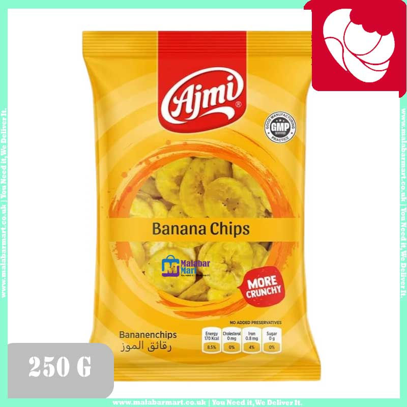 Discover AJMI Banana Chips 200g at Malabar Mart. Authentic classic & ripe Kerala plantain snacks with premium quality. Crunchy, delicious Indian snacks delivered to your door. Buy online UK.